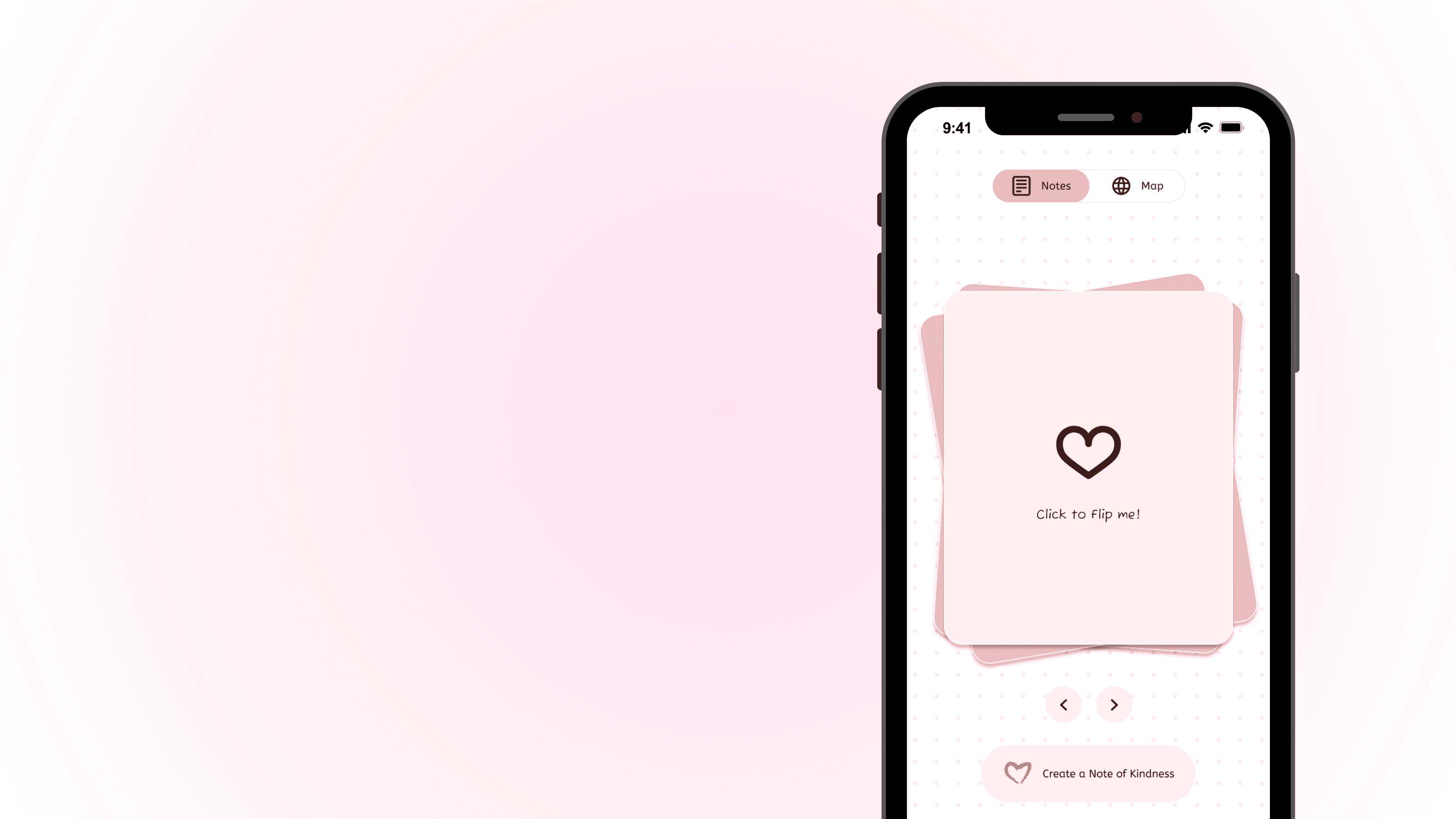 We used Figma to create the final prototype which represents the app’s visual layout and interactive properties if it were fully developed. In short, it is a simple app that spreads positivity with a home feed of local entries describing moments of kindness by anonymous users. There is also a Map tab that shows dropped pins based off of where users submitted from.